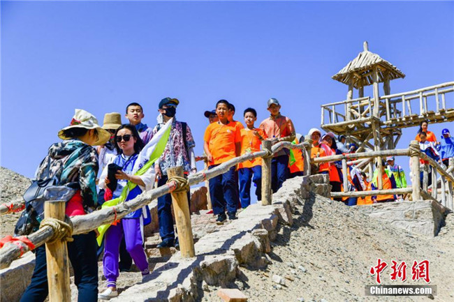 敦煌陽(yáng)關(guān)景區(qū)新開(kāi)辟的陽(yáng)關(guān)棧道旅游項(xiàng)目,端午節(jié)期間吸引眾多游人體驗(yàn)。王斌銀 攝