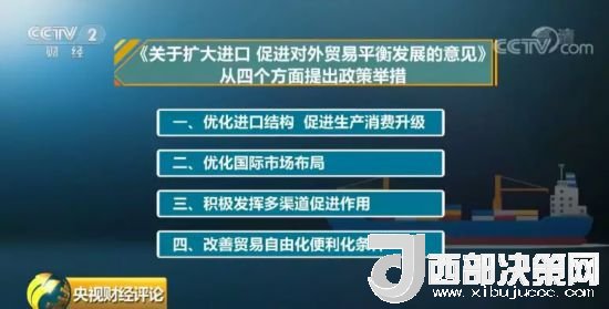 日前,國(guó)務(wù)院辦公廳轉(zhuǎn)發(fā)商務(wù)部等20個(gè)部門(mén)《關(guān)于擴(kuò)大進(jìn)口 促進(jìn)對(duì)外貿(mào)易平衡發(fā)展的意見(jiàn)》?!兑庖?jiàn)》從四個(gè)方面提出政策舉措:一是優(yōu)化進(jìn)口結(jié)構(gòu),促進(jìn)生產(chǎn)消費(fèi)升級(jí);二是優(yōu)化國(guó)際市場(chǎng)布局;三是積極發(fā)揮多渠道促進(jìn)作用;四是改善貿(mào)易自由化便利化條件。其中,在優(yōu)化進(jìn)口結(jié)構(gòu)方面,提出了四個(gè)方向,包括:支持關(guān)系民生的產(chǎn)品進(jìn)口、積極發(fā)展服務(wù)貿(mào)易、增加有助于轉(zhuǎn)型發(fā)展的技術(shù)裝備進(jìn)口、增加農(nóng)產(chǎn)品和資源性產(chǎn)品進(jìn)口。