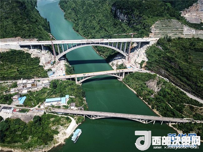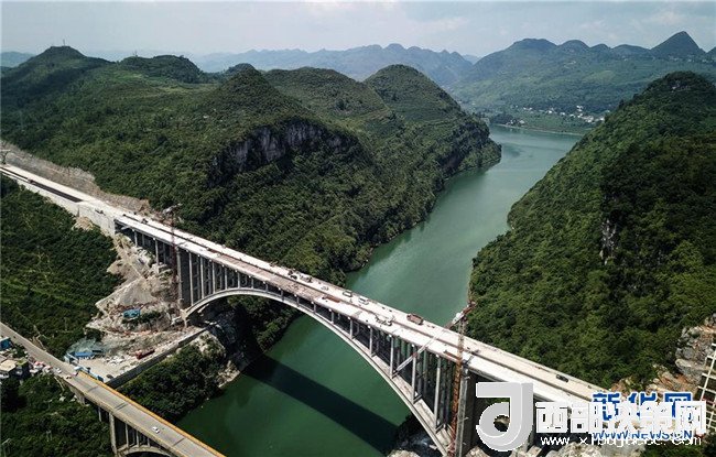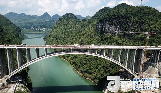 貴州織普高速公路控制性工程——夜郎湖特大橋日前實(shí)現(xiàn)全線貫通,預(yù)計(jì)本月底可全面建成。該橋由貴州橋梁建設(shè)集團(tuán)于2016年5月開始施工,全長391.4米,拱圈凈跨徑210米。據(jù)了解,織普高速全長約52公里,建成后由織金縣到普定縣的車程可從原來的2.5小時縮短到35分鐘,將大幅提高通行效率,進(jìn)一步推動沿線經(jīng)濟(jì)發(fā)展。新華社記者 陶亮 攝