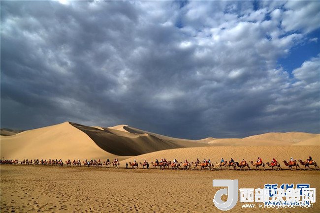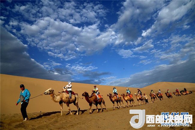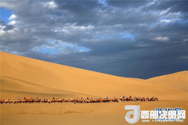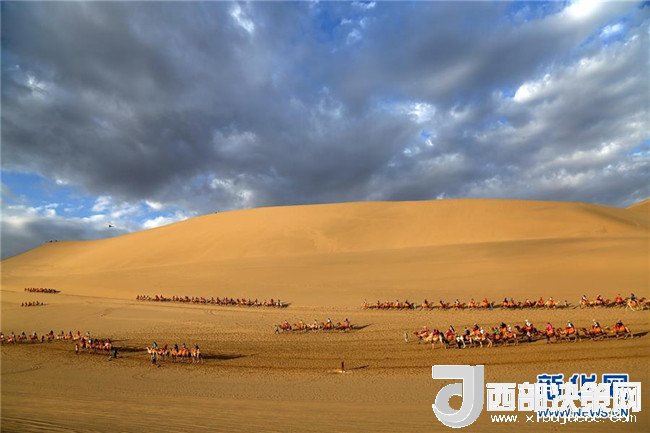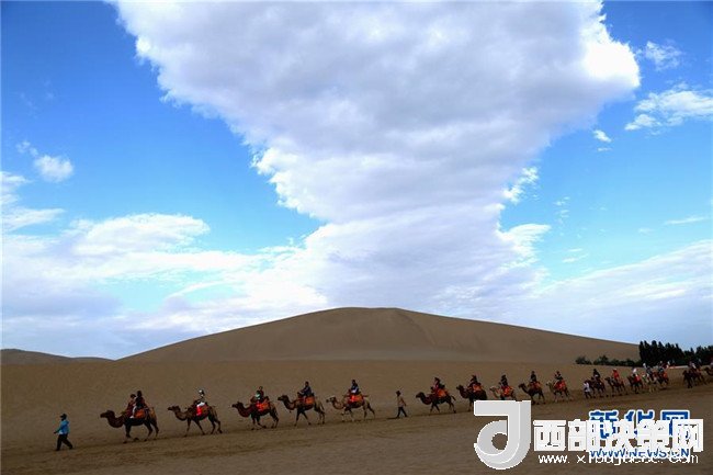 當日,甘肅省敦煌市鳴沙山月牙泉景區(qū)云景如畫,美不勝收,游客徜徉其中,盡情欣賞大漠風(fēng)光。 新華社發(fā)(張曉亮 攝)
