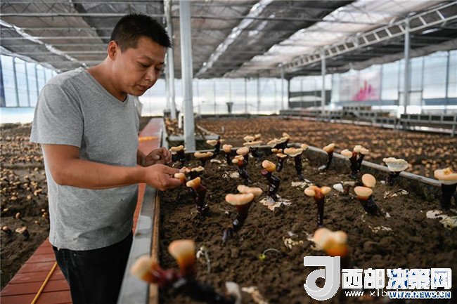 技術(shù)人員在西藏林芝市米林縣南伊村白靈芝種植基地大棚內(nèi)查看白靈芝長(zhǎng)勢(shì)(7月27日攝)。新華社記者劉東君攝