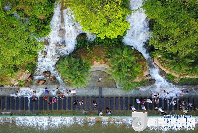 炎炎夏日,柳州市區(qū)柳江沿岸的人工瀑布群每天定時(shí)開放,為市民送去清涼。新華社發(fā)(黎寒池 攝)