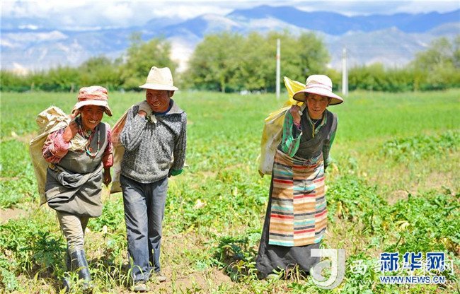 8月8日,在邊雄鄉(xiāng)普夏村蘿卜種植基地,村民將收獲的蘿卜運向地頭。 新華社發(fā)(趙宏 攝)