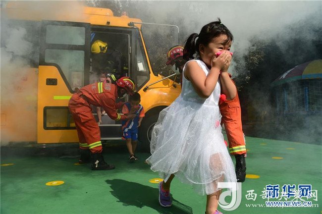 新學(xué)期開學(xué)在即,河北省滄州市新華區(qū)在幼兒園、中小學(xué)舉行消防應(yīng)急逃生演練,重點針對校車安全、突發(fā)火情逃生等環(huán)節(jié)進(jìn)行模擬演練,提高學(xué)生的防范意識與應(yīng)急避險能力。 新華社發(fā)(傅新春 攝)
