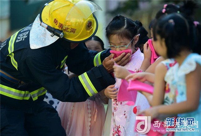 8月27日,滄州市公安消防支隊新華區(qū)建設(shè)大街中隊的消防戰(zhàn)士為幼兒園的孩子講解火災(zāi)逃生知識。