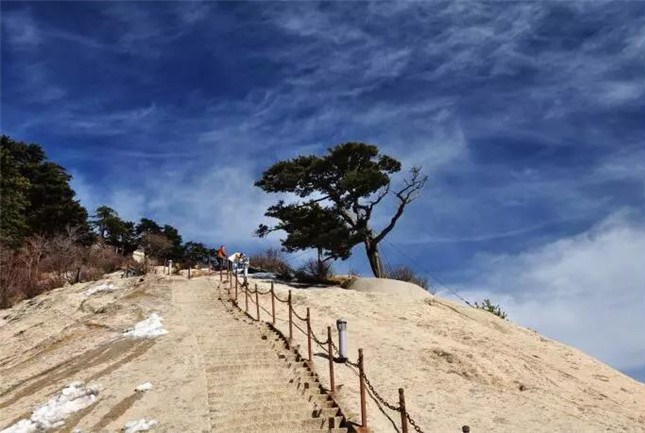 北峰海拔1614米,為華山主峰之一,因位置居北得名。北峰四面懸絕,上冠景云,下通地脈,巍然獨(dú)秀,有若云臺(tái),因此又名云臺(tái)峰。唐李白《西岳云臺(tái)歌送丹丘子》詩(shī)曾寫(xiě)到:“三峰卻立如欲摧,翠崖丹谷高掌。白帝金精運(yùn)元?dú)?,石作蓮花云作臺(tái)。”