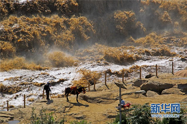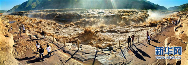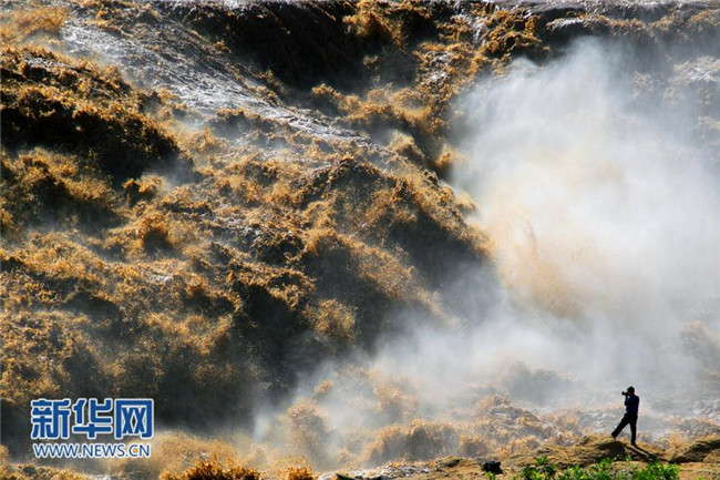 入秋以來,受上游降雨影響,陜西宜川黃河壺口瀑布水量大增,出現(xiàn)“山飛海立”、“旱天鳴雷”的自然景觀,引來眾多游客和攝影愛好者。(趙潔)
