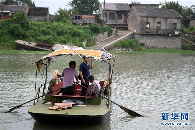 安徽含山縣運漕鎮(zhèn)楊謝小學河北教學點教師汪開寬(中)在放學后乘船到島對面的集市買菜(2017年9月5日攝)。河北教學點所在的河北自然村四面環(huán)河,島上人口不足100人。30年前,師范學校畢業(yè)的汪開寬來到這里,開始了自己的教師生涯。近年來,學生數量慢慢減少到個位數,其他老師陸續(xù)離開,最后只剩下汪開寬一人。然而為了島上的孩子們不用涉險過河上學,汪開寬依舊選擇了堅守。新華社記者 劉軍喜 攝
