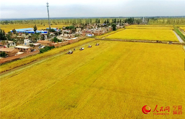 秋高氣爽,位于寧夏回族自治區(qū)銀川市賀蘭縣的水稻陸續(xù)成熟,進(jìn)入收割期,農(nóng)民搶抓農(nóng)時(shí)進(jìn)行收割。豐收的喜悅,揮灑在人們的汗水中,綻放在人們的笑容里。據(jù)悉,2018年銀川市糧食種植面積138.94萬畝,其中水稻51.16萬畝,玉米53.38萬畝,小麥27萬畝,雜糧7.4萬畝。預(yù)計(jì)2018年全市糧食產(chǎn)量74萬噸。(閻夢婕、高嘉蔚)