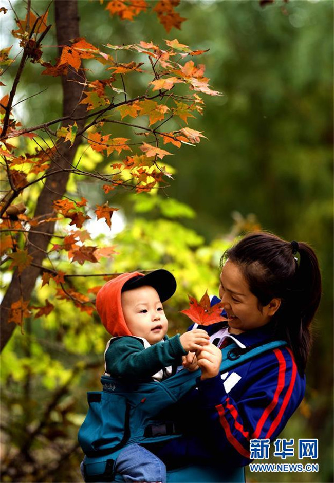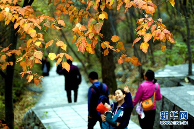 10月6日,游客在位于太行山東麓的靈壽縣五岳寨自然風(fēng)景區(qū)內(nèi)觀賞紅葉。新華社發(fā)(陳其保 攝)