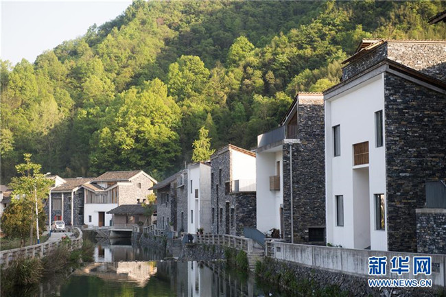 浙江省杭州市富陽區(qū)洞橋鎮(zhèn)文村地處富陽區(qū)遠郊,村中保有40幢古民居,建筑師王澍以當(dāng)?shù)氐慕ㄖ牧虾蜕顐鹘y(tǒng)為村里設(shè)計了14幢新民居,呈現(xiàn)出美麗宜居鄉(xiāng)村新面貌(4月10日攝)。 新華社記者 翁忻旸 攝