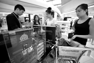 旅客在海口美蘭機(jī)場(chǎng)免稅店柜臺(tái)結(jié)算。 新華社 圖