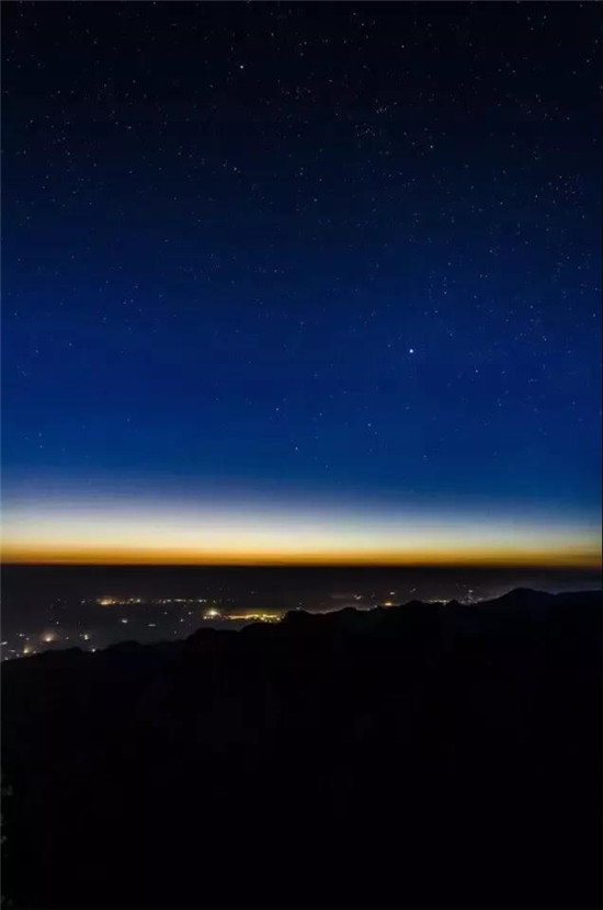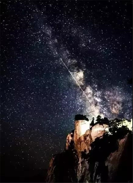 繁眼的星光,滿(mǎn)山的燈光,將華山映襯得一派柔和,這里的夜屏蔽了城市的喧囂與繁華,有著不屬于城市的寧?kù)o與美麗。