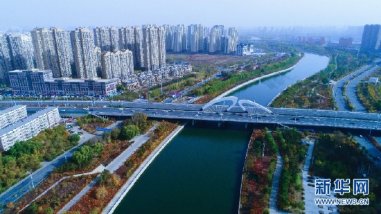 呼和浩特環(huán)城水系如玉帶纏繞。新華網(wǎng)發(fā) (樂炎 攝)