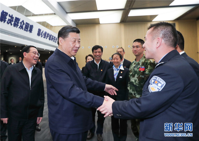 這是習(xí)近平在浦東新區(qū)城市運(yùn)行綜合管理中心同工作人員親切握手。 新華社記者 謝環(huán)馳 攝
