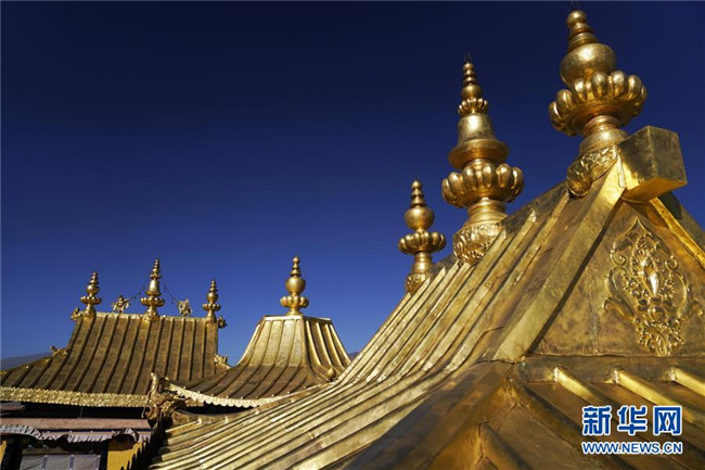 修繕后的布達(dá)拉宮金頂局部(11月7日攝)。 新華社記者普布扎西 攝
