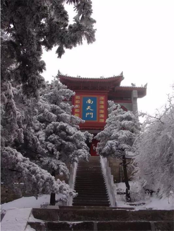 8、從玉泉院出發(fā),經(jīng)“回心石”、“千尺幢”、”百尺峽”和“老君犁溝”到北峰,從北峰南上,經(jīng)“擦耳崖”、“蒼龍嶺”,過(guò)金鎖關(guān),從這里可分別前往東、中、南、西三峰。