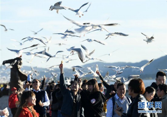 近日,云南省昆明市陽(yáng)光明媚、氣候宜人,不少市民和游客來到滇池大壩、大觀公園等地,觀賞前來越冬的紅嘴鷗。新華社記者 藺以光 攝