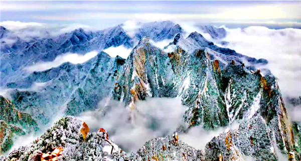 17日凌晨的一場大雪將西岳華山變成白雪皚皚的世界,白雪與蒼翠的華山奇松、靈動的云海交相輝映,如夢如幻;滿山遍野玉樹瓊花,樹枝上通體的霧凇晶瑩剔透,繪就冬日畫境,美不勝收,游人如置身人間仙境。
