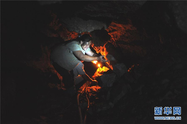 貴州省羅甸縣麻懷村村支書鄧迎香帶領(lǐng)群眾挖山鑿洞(資料照片)。新華社發(fā)(郭一江 攝)