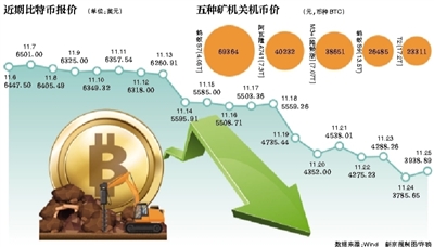 進(jìn)入2018年,比特幣價格一直處于震蕩下行之中。近兩周下跌趨勢愈加明顯,Wind數(shù)據(jù)顯示,繼11月14日比特幣報價跌破6000美元后,19日跌破5000美元,24日跌破4000美元。