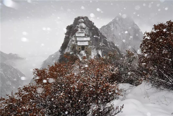 華山在11月下旬進入冬季,12月至次年3月是華山雪季。游客可欣賞到難得一見的華山雪景——美麗的霧凇給樹木、巖石、屋舍都披上一層晶瑩的薄衣,尤其在大雪覆蓋后,山景變成一幅曼妙的白色圖畫,峰上的樹木和古藤被透明的冰層包裹,極富魅力。