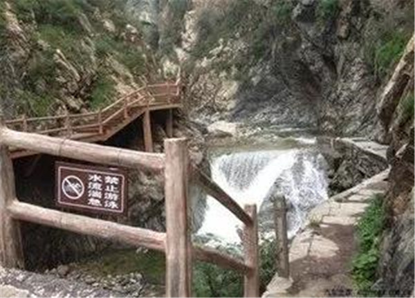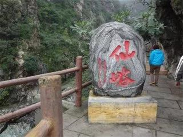 仙峪,又名車箱谷,在華山峪西,與華山峪僅一嶺之隔。傳說古時(shí)黃初平、黃初起弟兄在此牧羊成仙,因而得名。仙峪深五十余里,峪道窄狹清幽,山路崎嶇蜿蜒,河流湍急,山石險(xiǎn)峻,多處路段鑿崖,加棧凌空通過。進(jìn)峪五里處,有斜嶺橫阻,令人有谷盡路絕之感,然越嶺橫度,又平添柳暗花明的情趣。