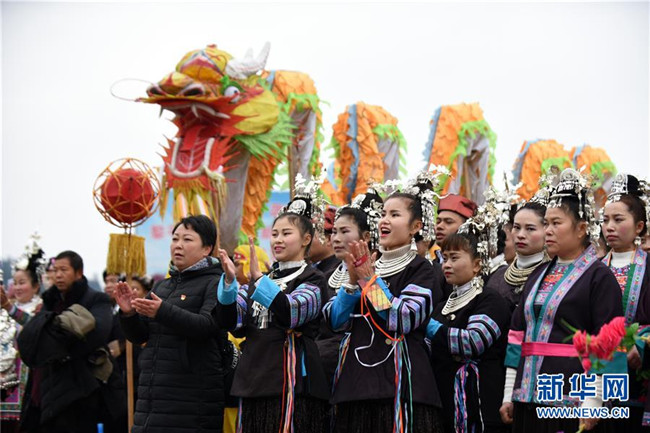 12月7日至9日,貴州省黔東南苗族侗族自治州黎平縣肇興、佳所等侗寨的侗族同胞身著節(jié)日盛裝,與賓朋歡聚一堂,通過盛裝巡游、鼓樓對歌、侗戲展演、舞龍、打年粑等特色民俗活動,歡度侗年。新華社發(fā)(楊文斌 攝)