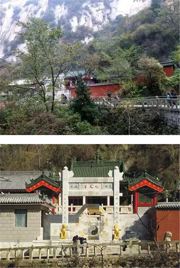 青柯坪背依主峰,絕壁千仞,拔地而起;水簾瀑布,如從云天垂落,跌落谷中,聲如雷霆,主峰由于總是處在逆光和側(cè)逆光中,就象巨靈神剪影緊貼天幕之上。登臨青柯坪,還可眺望秦川,那種感覺就如從洞天俯視塵寰。四周峰巒環(huán)繞,林木蔥郁,山寺石洞,掩映其間,這里就是華山風(fēng)水的結(jié)穴處。我們現(xiàn)在所處的是西道院又名紫云宮,這里供奉的是“三霄”娘娘,為道教送子神。明朝時為太華書院,名儒馮從吾坐館任教,著書立說,從學(xué)者三百,可想當(dāng)時的盛況。