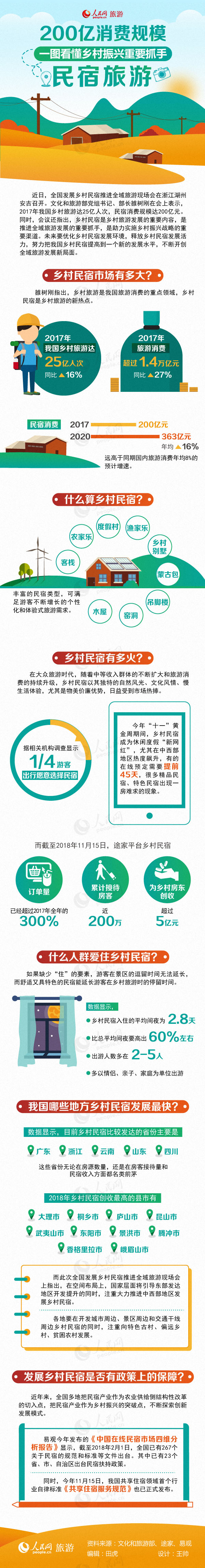 近日,全國發(fā)展鄉(xiāng)村民宿推進全域旅游現(xiàn)場會在浙江湖州安吉召開。文化和旅游部黨組書記、部長雒樹剛在會上表示,2017年我國鄉(xiāng)村旅游達25億人次,民宿消費規(guī)模達200億元。同時,會議還指出,鄉(xiāng)村民宿是鄉(xiāng)村旅游發(fā)展的重要內(nèi)容,是助力實施鄉(xiāng)村振興戰(zhàn)略的重要渠道,未來要優(yōu)化鄉(xiāng)村民宿發(fā)展環(huán)境,不斷開創(chuàng)全域旅游發(fā)展新局面。如此大的規(guī)模,鄉(xiāng)村民宿到底是什么?哪些地區(qū)鄉(xiāng)村民宿最火?什么人群愿為鄉(xiāng)村民宿買單?一張圖帶你讀懂鄉(xiāng)村民宿?。ㄌ锘ⅲ?/p>