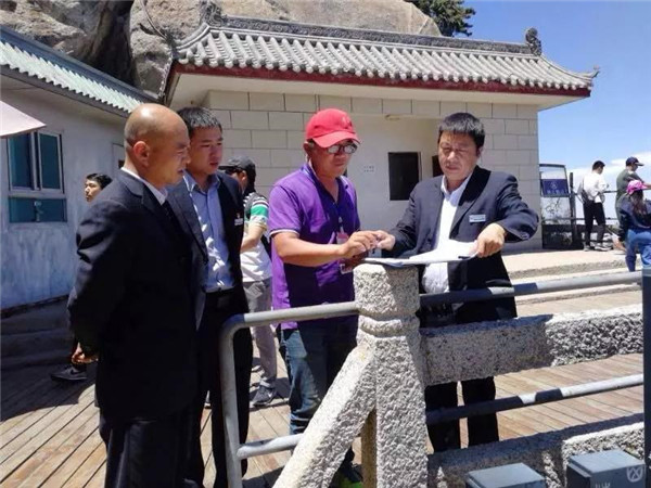 其實(shí),雷科峰平時(shí)對(duì)大家要求挺嚴(yán)的,職工背后議論說雷科峰有一種軍人作風(fēng),凌厲、硬氣,大家跟上他干事活多還辛苦。印象最深的是那一次美化南天門“三間房一頁瓦”附近的臺(tái)地。坑洼不平的臺(tái)地上原來蒙著一堆土,晴天一層灰,雨天滿地泥,冬天雪泥一凍一消,平臺(tái)就成了沼澤,不說過來過去行走不便,看起來也讓人不舒服,游客常常一不小心就濺得滿身的泥水,很掃興,雷科峰下決心美化平臺(tái)。美化平臺(tái)所用的沙子、石子、水泥要到二三里路遠(yuǎn)的溝底去背。從山頂?shù)綔系?,一路上全是立坡陡崖,雷科峰領(lǐng)著十幾名職工利用六天的工余時(shí)間,硬是把近二十噸的沙石背了上來。背料過程中,有的職工肩膀磨破了,有的雙腿像篩糠一樣抖個(gè)不停,許多職工中途不敢蹴下來休息,怕一蹴下就再也站不起來了,歇息時(shí)把沙袋子擱在路邊的石坎上,人站著緩口氣……一個(gè)個(gè)汗流浹背,氣喘吁吁。