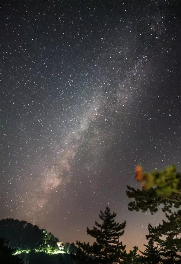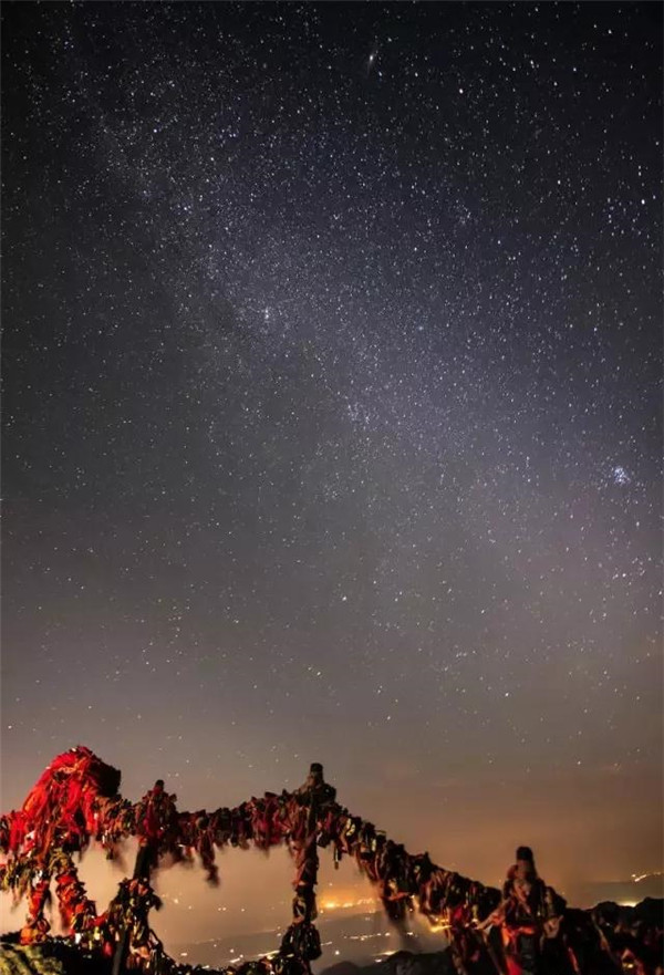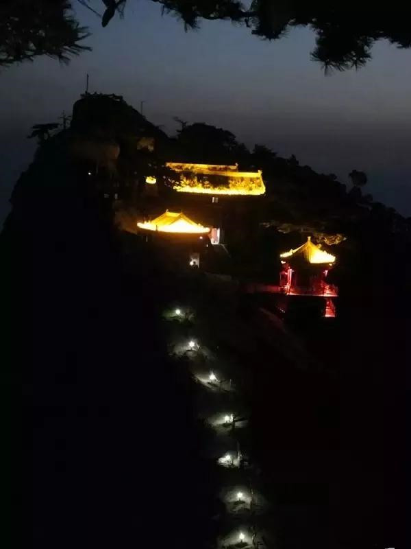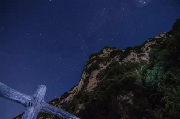繁眼的星光,滿山的燈光,將華山映襯得一派柔和,這里的夜屏蔽了城市的喧囂與繁華,有著不屬于城市的寧靜與美麗。