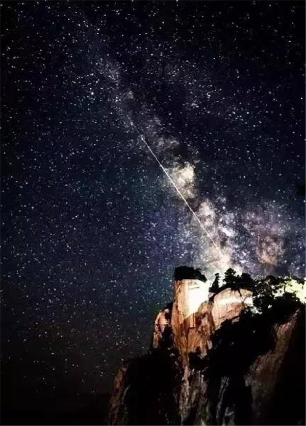 華山的月夜與星空交互輝映,佇立華山之巔,觀星河交匯,無際的銀河仿佛近在咫尺,在這里,你便被華山的夜色誘惑。