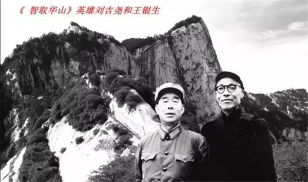 1949年6月,西北野戰(zhàn)軍解放了西安,當華陰縣城解放時,偽保六旅旅長韓子佩,帶一個警衛(wèi)營和旅直屬隊300余人逃到了華山上,企圖依靠華山天險繼續(xù)同胡宗南聯(lián)系等待時機,卷土重來。6月14日,中國人民解放軍大荔軍分區(qū)路東縱隊偵察參謀劉吉堯和六名偵察兵前往華山偵察道路。在當?shù)叵驅蹉y生的帶領下,劉吉堯星夜帶領楊建東、路德才、孟俊甫、楊黨成、崔朝山、張自發(fā)等8勇士,到達猩猩溝盡頭。數(shù)百丈危崖聳立在面前,王銀生指著一個十丈高的黑洞說:“這是天井,我們就要從這里上去。”說著就把背著的大繩套在腰間,借著兩腿叉開的撐力,徐徐向上。10分鐘后,洞里放下來一根繩頭,7位偵察員依次被吊上天井。經(jīng)過一段險坡后,前面又是一個高約15米的陡立石壑。王銀生施展他在山里采藥、打柴的本領,借著一條石縫登上去,把繩子拴在一個木樁上,將其他同志吊上來。又向北行約1里便是“老虎口”,這是懸在絕壁上的一個崖歙,崖歙的上面伸出一個飛巖,下面是傾斜的滑坡,坡下便是一眼望不到底的萬丈深淵。這時候只要雙腿發(fā)軟,就會滑下去,尸骨無存。戰(zhàn)士們只能借著腰肢和肩膀的上下?lián)瘟?,好像一個木楔子似的慢慢通過。在漆黑的夜里,他們又下滑輾轉500多米,才到達北峰腳下。