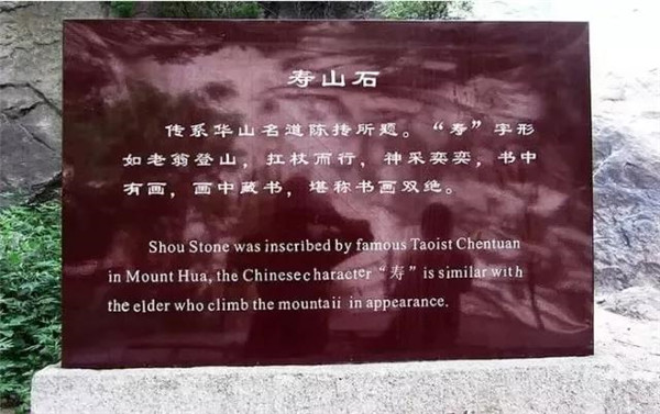“壽山”二字在華山峪進山一公里處山崖上,為道祖陳摶所題書。