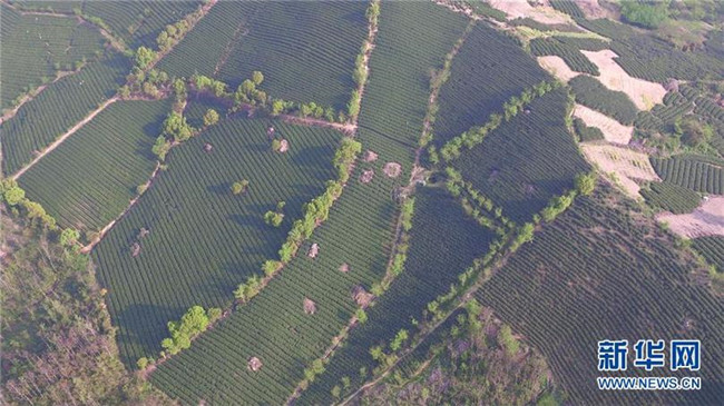 這是2018年4月2日拍攝的無錫宜興白塔村茶園(無人機拍攝)。 新華社記者 季春鵬 攝