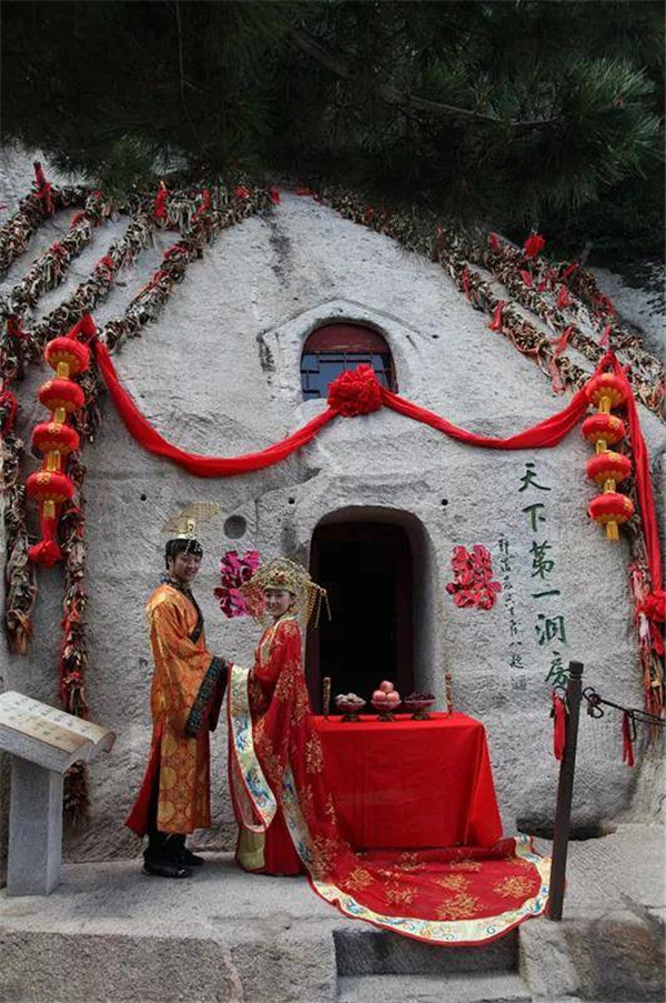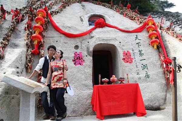 天下第一洞房——相傳秦穆公的女兒弄玉與吹簫人蕭史相愛后,乘龍跨鳳,騰空來(lái)至華山,鑿洞成婚并得道成仙,“洞房”一詞也是源于此。