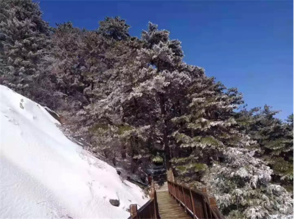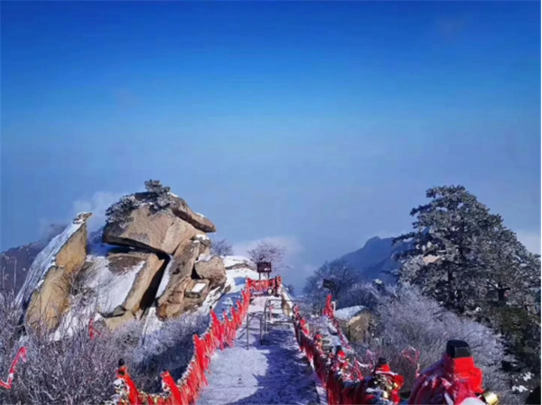 走進雪后的華山,你會覺得自己仿佛掉進了一個銀裝素裹的童話世界里,整個世界仿佛都被披上了一層白色婚紗。