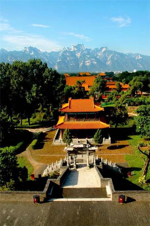 西岳廟是供奉西岳大帝華山神的廟宇,廟始建于漢武帝時(shí)代,后成為歷代帝王祭祀華山神的場所。西岳廟坐北朝南,廟門正對(duì)華山。在由北至南的中軸線上依次排列著灝靈門、五鳳樓、欞星門、金城門、灝靈殿、寢宮、御書樓、萬壽閣。整個(gè)建筑呈現(xiàn)前低后高的格局。西岳廟建筑相當(dāng)宏偉。五鳳樓建于高臺(tái)上,高達(dá)20多米,登樓望華山,五峰歷歷在目。正殿灝靈殿建筑為琉璃瓦單檐歇山頂,坐落于寬廣的“凸”字型月臺(tái)之上,面寬7間,進(jìn)深5間,周圍有回廊,氣勢宏偉,歷代帝王祭祀華山多住于此。殿內(nèi)懸掛有康熙、道光、慈禧所題“金天昭端”、“仙云”等匾額。整個(gè)院落林木繁茂,山石嶙峋,饒有園林之趣。