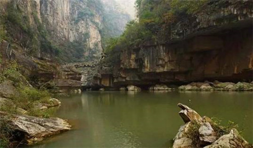第二游:仙峪(仙峪,又名車箱谷,在華山峪西,與華山峪僅一嶺之隔,傳說古時(shí)黃初平、黃初起弟兄在此牧羊成仙,因而得名。仙峪深五十余里,峪道窄狹清幽,山路崎嶇蜿蜒,河流湍急,山石險(xiǎn)峻,多處路段鑿崖,加棧凌空通過。進(jìn)峪五里處,有斜嶺橫阻,令人有谷盡路絕之感,然越嶺橫度,又平添柳暗花明的情趣)。