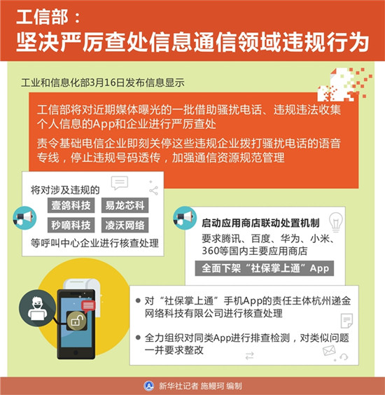 工業(yè)和信息化部16日發(fā)布信息顯示,工信部將對近期媒體曝光的一批借助騷擾電話、違規(guī)違法收集個人信息的App和企業(yè)進(jìn)行嚴(yán)厲查處,責(zé)令基礎(chǔ)電信企業(yè)即刻關(guān)停這些違規(guī)企業(yè)撥打騷擾電話的語音專線,停止違規(guī)號碼透傳,加強(qiáng)通信資源規(guī)范管理。