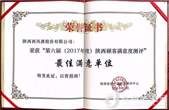 西鳳股份公司獲得“第六屆陜西顧客滿意度測評(píng)” 最佳滿意單位光榮稱號(hào)