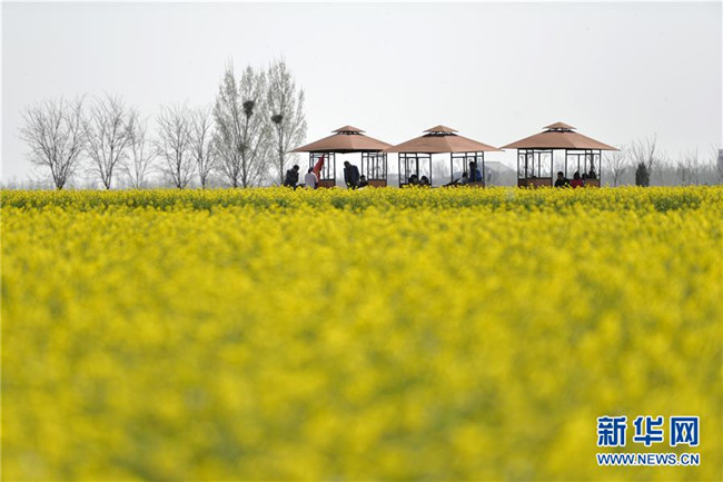 3月26日,游客在河北省沙河市東葛泉村油菜花田內(nèi)游覽。