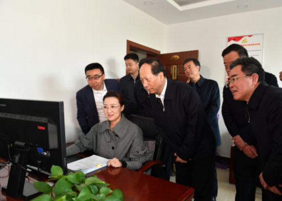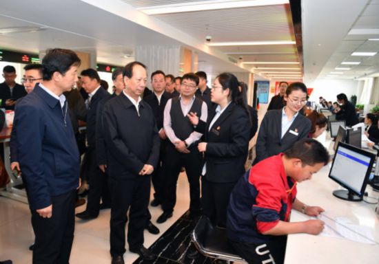 4月9日,石泰峰來到賀蘭縣審批服務管理局,調研深化商事制度改革情況。
