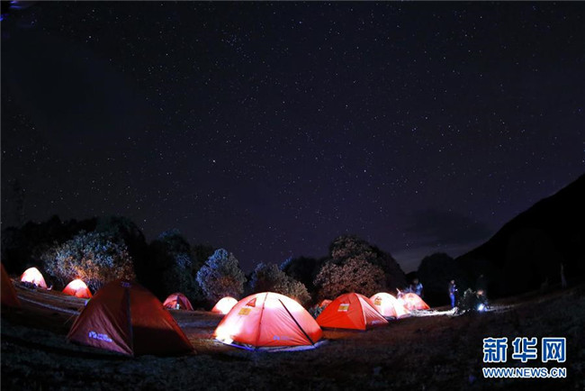 4月23日,來自攀枝花市的戶外愛好者在龍頭山露營(yíng)。 近日,四川省攀枝花市鹽邊縣龍頭山十余萬畝野生杜鵑花盛開,吸引省內(nèi)外游客前來登山賞花。 龍頭山位于四川省攀枝花市鹽邊縣北部的紅寶苗族彝族鄉(xiāng)境內(nèi),這里的野生杜鵑花花期為2月至5月。 新華社記者 江宏景 攝