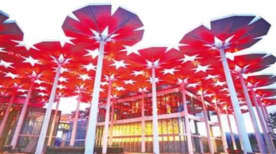 由94把巨大鋼“花傘”構成的國際館,宛如一片絢爛的“花海”。人民日報記者賀勇攝