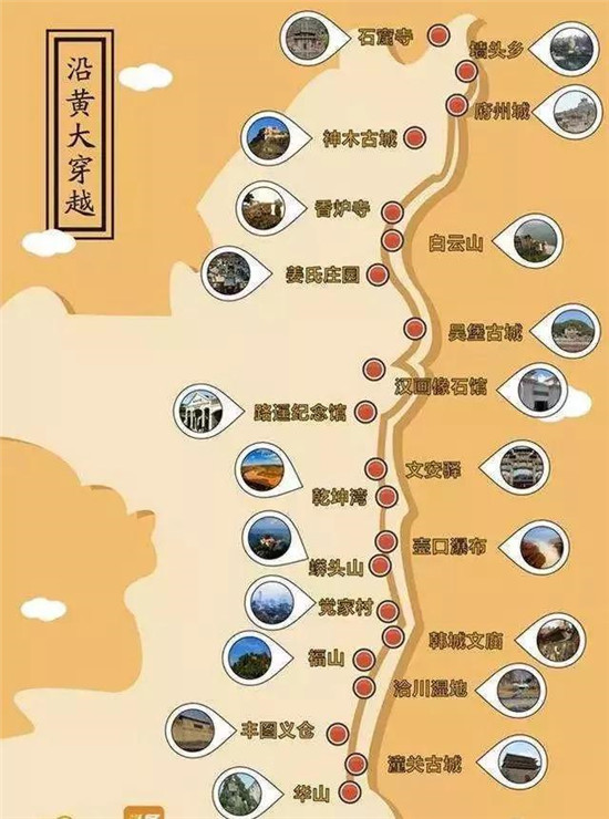 剛剛小編給大家推薦的這幾個(gè)華山周邊好去處大多位于沿黃公路沿線(xiàn),還有豐圖義倉(cāng)、洽川濕地、司馬遷祠、韓成古城、黨家村等20多個(gè)旅游景點(diǎn)就不詳細(xì)介紹,其中最遠(yuǎn)的距離華山僅200多公里,駕車(chē)需1至3小時(shí)。