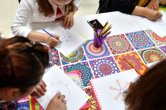 5月12日,職工們?cè)诶蠋煹囊龑?dǎo)下進(jìn)行自我認(rèn)識(shí)、自我鼓勵(lì)。當(dāng)日,銀川市興慶區(qū)富寧街工會(huì)舉辦“心賦能 曼陀羅彩繪”職工心理減壓講座,轄區(qū)14家企業(yè)共40名職工參加。授課老師主要通過與職工面對(duì)面交流、手工DIY方式,跟職工一起分享了如何探索、療愈、釋放未知的自己,幫助職工從不同角度認(rèn)識(shí)看待壓力,促進(jìn)職工身心和諧發(fā)展。寧夏日?qǐng)?bào)記者 王鼎 攝