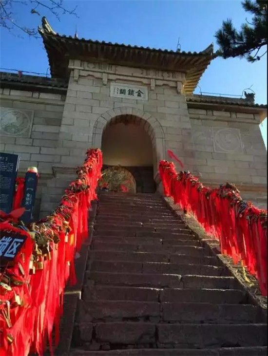 關(guān)內(nèi)關(guān)外登山路兩側(cè)的鐵索上掛滿了成千上萬枚的情侶鎖、平安鎖,人們在此留下美好的寄語、囑托、祝福、祈盼。