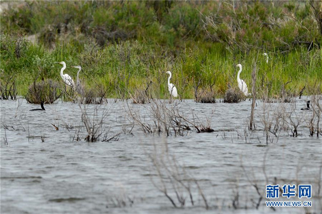 6月9日,白鷺在新疆烏倫古湖國家濕地公園休憩。 新華社記者 丁磊 攝